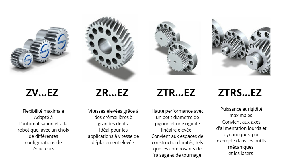 Les entraînements à crémaillère de STÖBER offrent un système compact, sûr et convivial pour les applications dans le domaine de l’automatisation, des machines-outils et de la robotique. En combinaison avec nos servomoteurs synchrones et nos réducteurs planétaires ou nos réducteurs à couple coniques, vous obtenez une solution globale extrêmement compacte et dynamique.